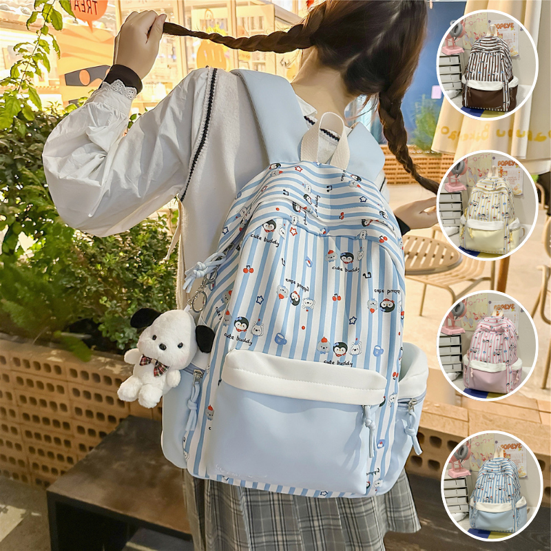 [T017] - 17 นิ้ว กระเป๋า กระเป๋าเป้สะพายหลัง มัธยมต้นปลาย สไตล์น่ารัก กระเป๋าเป้
