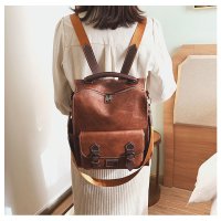 (A084) 13 นิ้ว - กระเป๋าสะพายหลัง หนัง PU ดูหรู คลาสสิคสุดๆ
