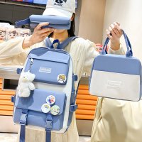 (A089) 16 นิ้ว - กระเป๋าสะพายหลัง เซ็ท 3 ใบ สีสันสดใส เรีนบหรู การออกแบบทูโทน